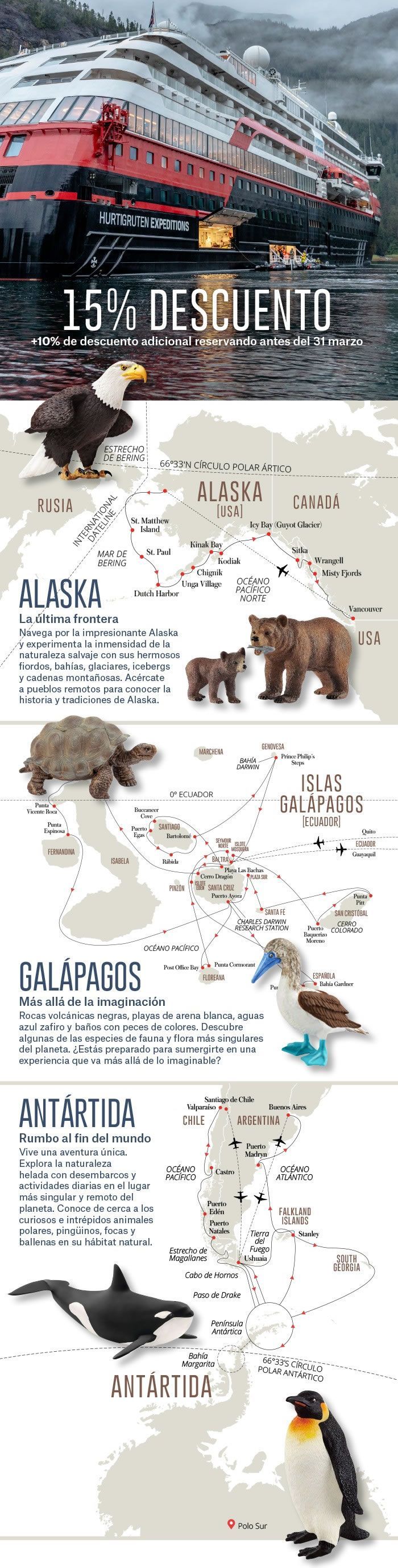 Es la manera perfecta para llegar al corazón de Alaska, la Antártida, el Ártico, el Mar de Cortés, Costa Rica y Panamá, Galápagos, el Amazonas o el Pacífico Sur. Una experiencia diferente para viajeros diferentes.