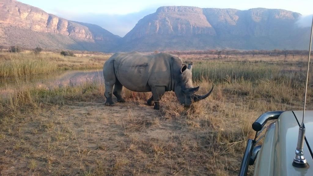 El santuario de rinoceronte blanco a pie.