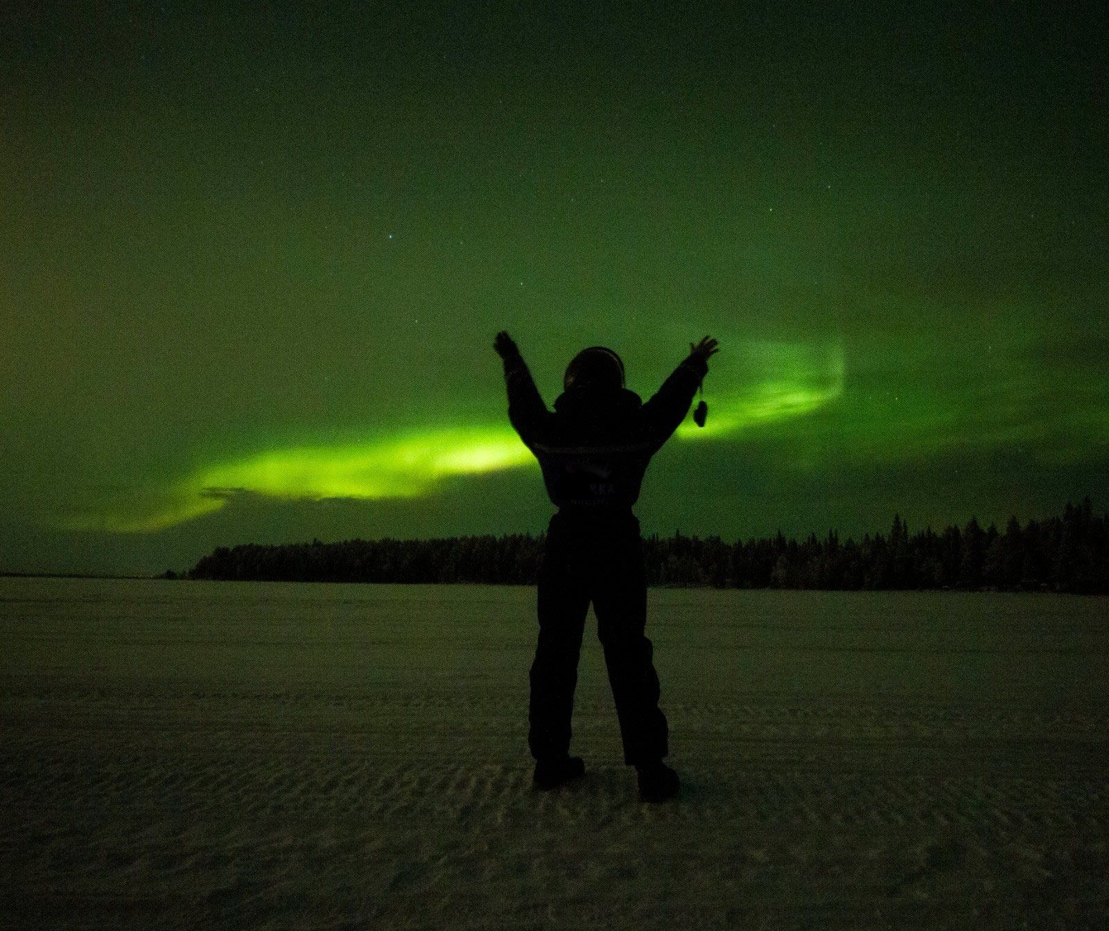 Vimos la aurora el primer día en el lago delante de la cabaña.
